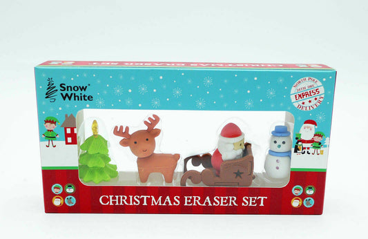 Christmas Eraser Rubber Santa Reindeer snowman Set Stocking Filler