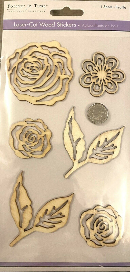 Laser Cut Wood Flower and leaves Embellishment Wooden Shape Craft Decors upcycle